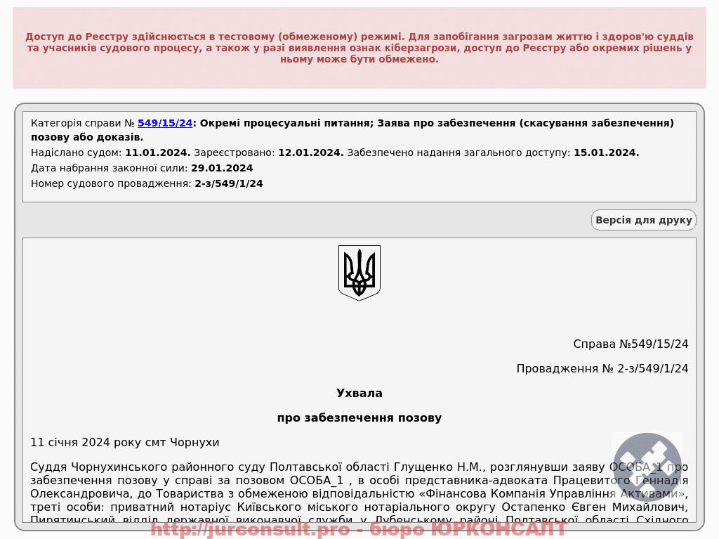 Захистили клієнта від стягнення 13 тис. грн кредиту з боку ФК Управління Активами. Добилися зупинення арешту рахунків до рішення суду!