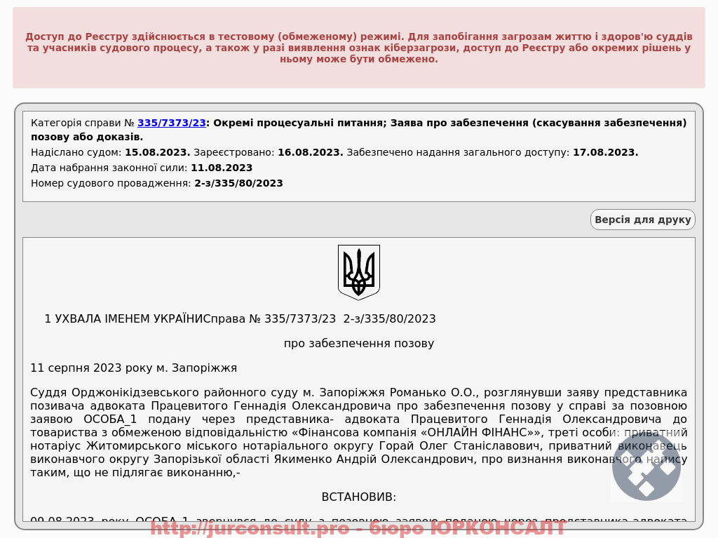 Захистили клієнта в суді та зупинили стягнення майже 48 000 грн на користь «Онлайн Фінанс» за виконавчим написом. Запобігли втраті грошей з зарплати клієнта!