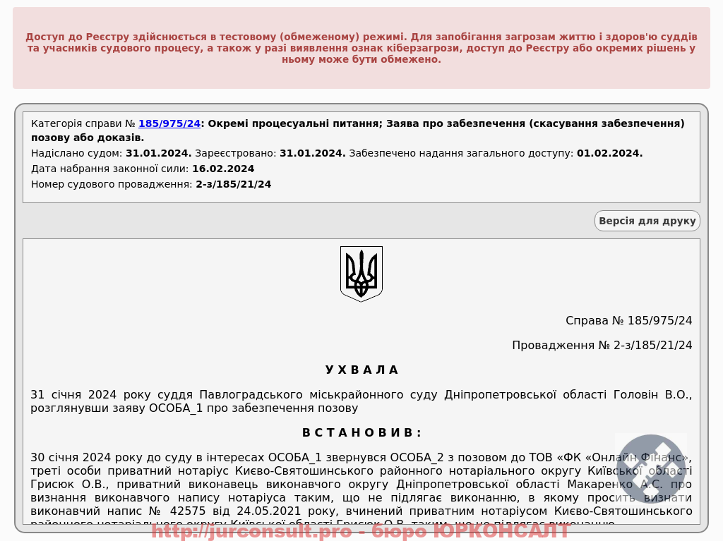 Домоглися зупинення стягнення по виконавчому напису МФО Онлайн Фінанс. Захистили клієнта від стягнення поки триває суд.