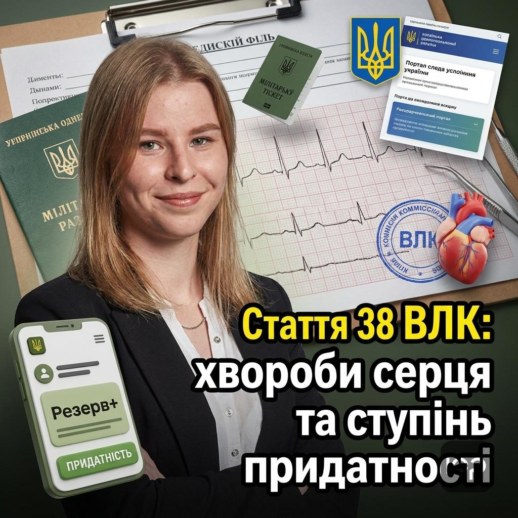 Для об’єктивної оцінки за статтею 38 обов’язково потрібні свіжі результати ЕКГ, ЕхоКГ (УЗД серця), холтерівське моніторування (за необхідності) та актуальний висновок профільного лікаря-кардіолога.
