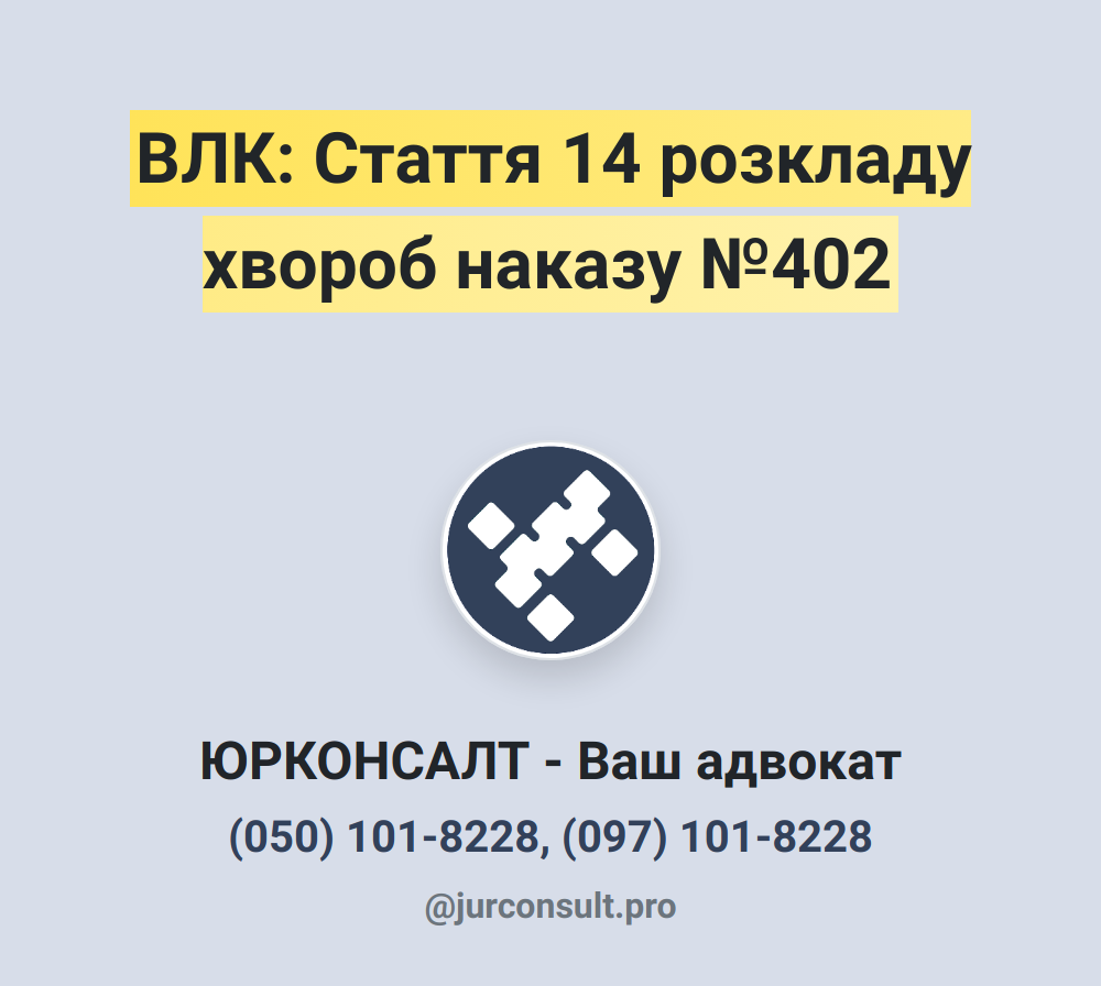 Теги: #військово_лікарська_комісія, #ВЛК, #юрконсалт, #військовізобовязані, #оцінка_придатності, #стаття14, #хворі, #юридична_поміч, #військовослужбовці, #розклад_хвороб. #адвокат #юрист #юрконсалт #ua #запоріжжя #рек #ukraine