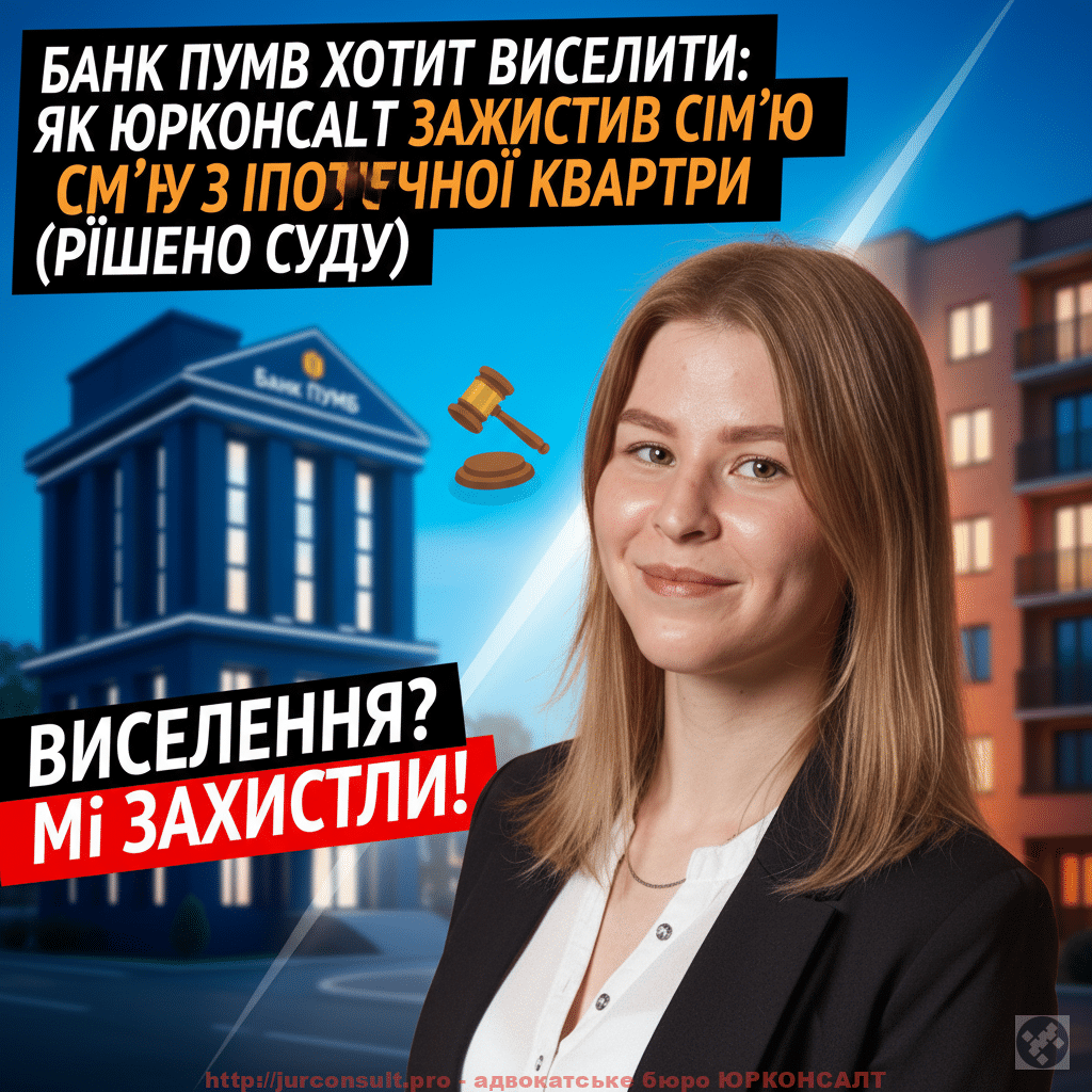 Адвокатське бюро «ЮРКОНСАЛТ» успішно захистило свого клієнта у складній цивільній справі. Банк ПУМБ подав позов про виселення з іпотечної квартири, але суд повністю відмовив у задоволенні вимог. Це доводить, що навіть у безнадійних, на перший погляд, ситуаціях є реальний шанс на перемогу.